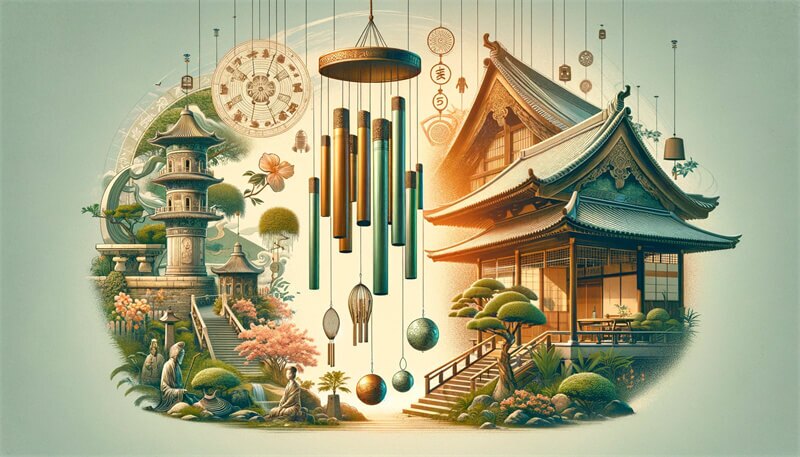 Di Jepang, lonceng angin, sering kali terbuat dari bambu, merupakan bagian integral dari taman tradisional. Lonceng ini menciptakan lingkungan yang tenang dan diyakini menandai perubahan musim, menambah keharmonisan dan ketenangan taman.