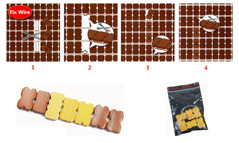 - Cut off the broken thread and remove one piece of bamboo seeds from the front and one piece from the back, except for the broken piece of bamboo seed.
